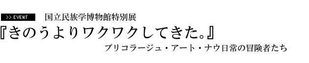 国立民族学博物館主催の特別展、ブリコラージュ・アート・ナウ 日常の冒険者たち。ブリコラージュ・アートとは、私たちのありふれた日常生活を対象にした表現活動や、その活動の結果として生み出される作品群のこと。民族学者のレヴィ=ストロースのブリコラージュ(未開社会特有の思考法)に由来しているそう。